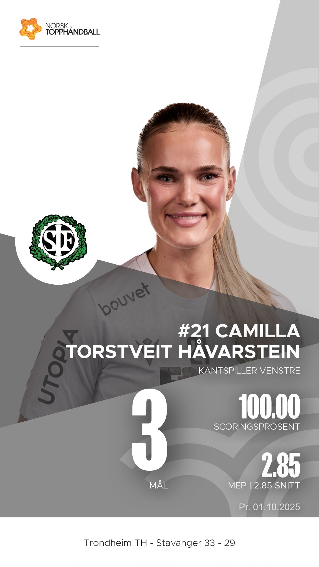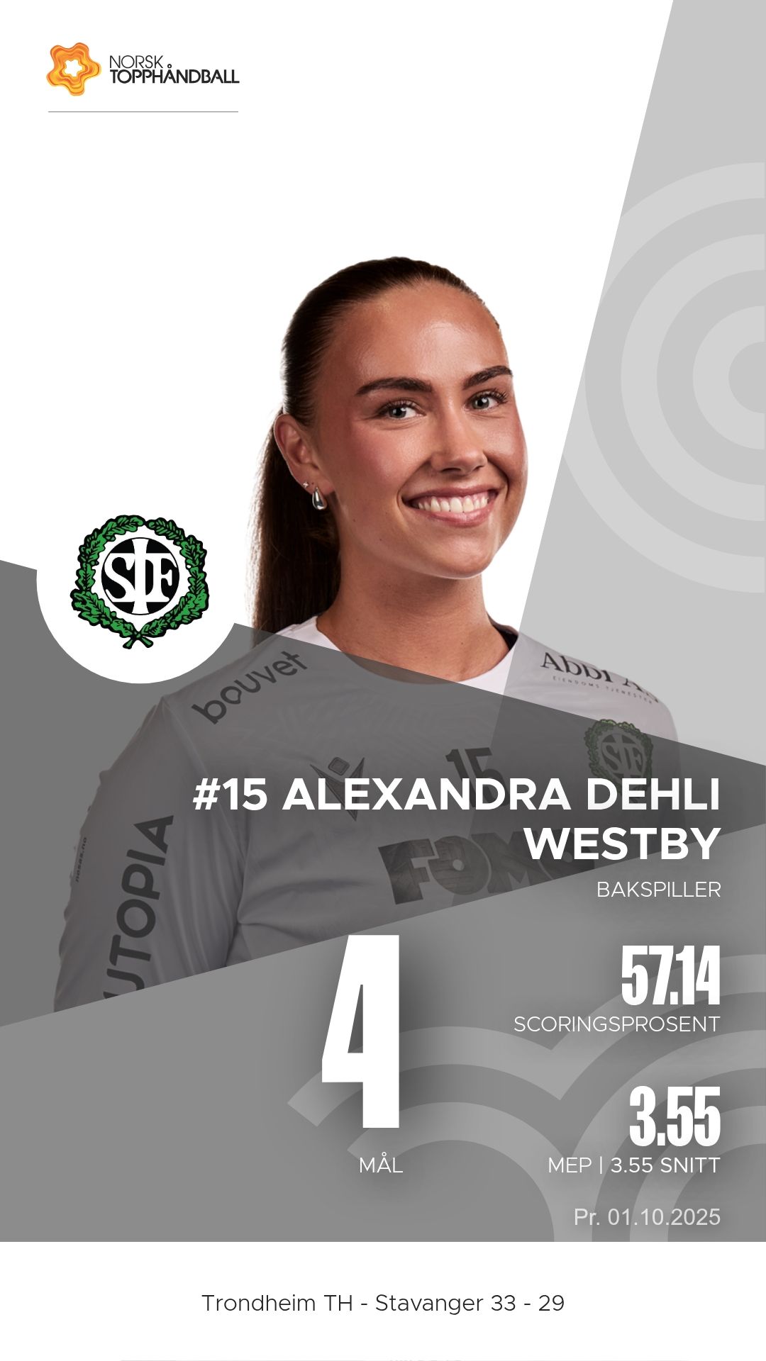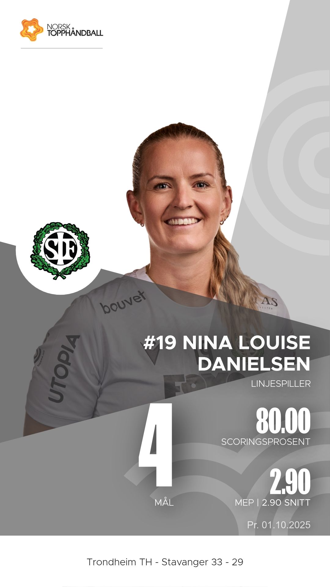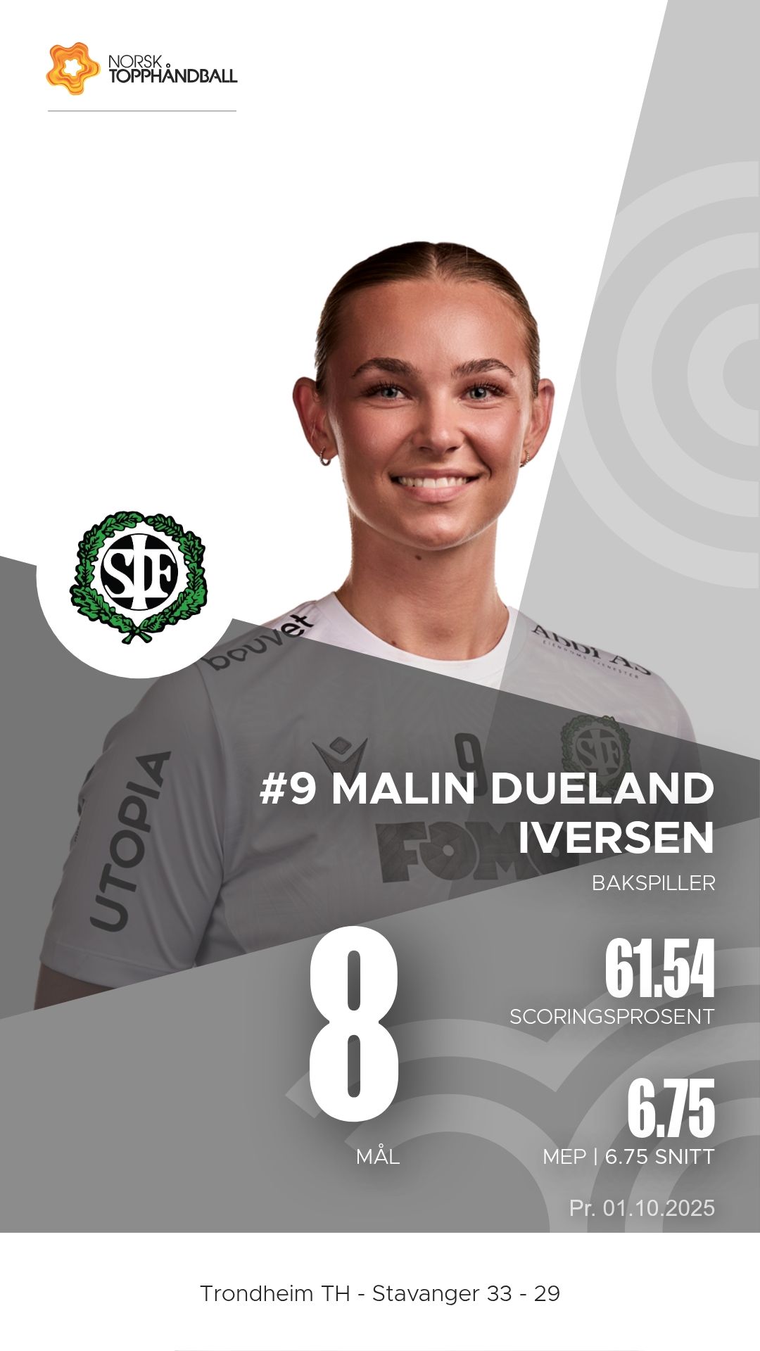 Trondheim Topphåndballklubb tok imot Stavanger i Husebyhallen onsdag 1. oktober 2025 i en kamp i 1. divisjon sesongen 2025/2026. Oppgjøret endte 33–29 etter at hjemmelaget hadde et lite overtak gjennom store deler av kampen, men Stavanger viste flere sterke perioder og presset vertene hardt.